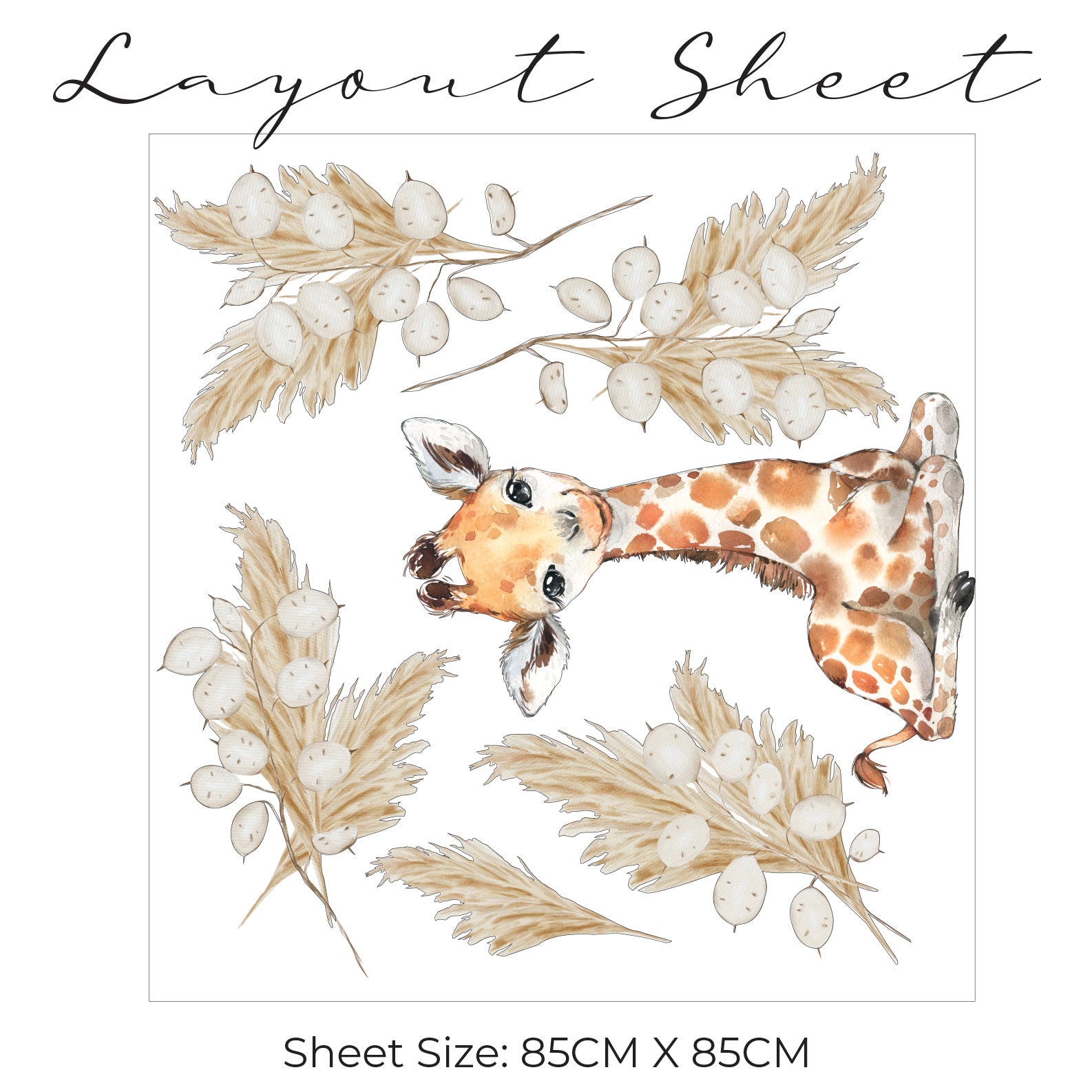 Our adorable Baby Giraffe Wall Sticker Set brings a soft, whimsical charm to any space. Featuring a beautifully illustrated giraffe surrounded by gentle neutral botanicals, this design adds warmth and joy to your nursery, playroom, or child’s bedroom.