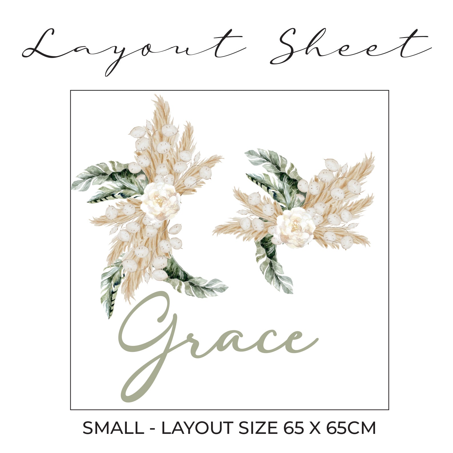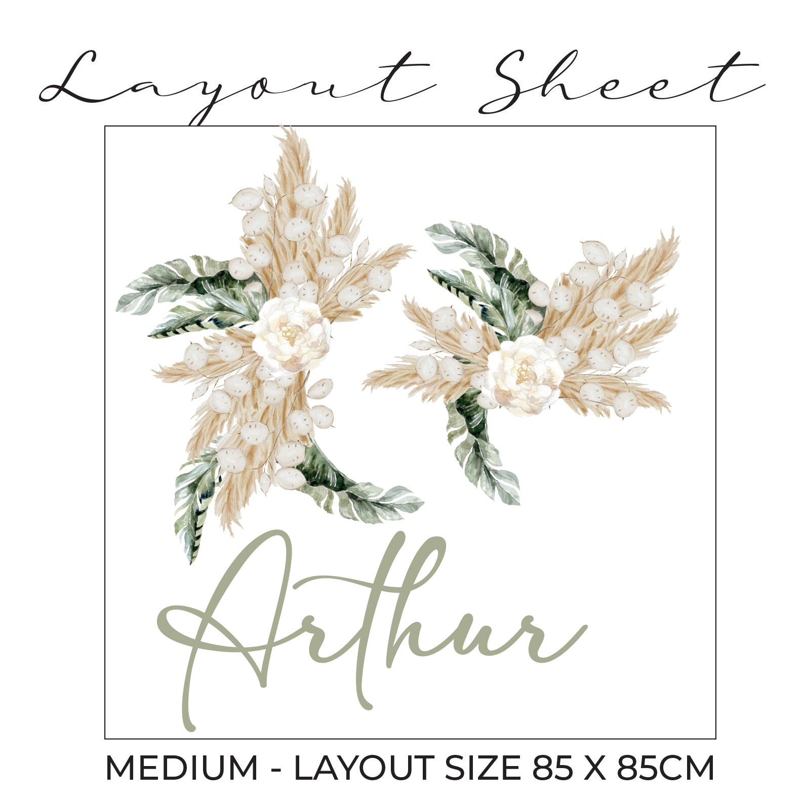 Introducing our adorable Baby Safari Personalised Name Wall Art Sticker! Perfect for adding a touch of charm and personality to your little one's nursery or bedroom. Each sticker features your selected baby name in a script font, surrounded by elegant pampas grass & lush greenery.