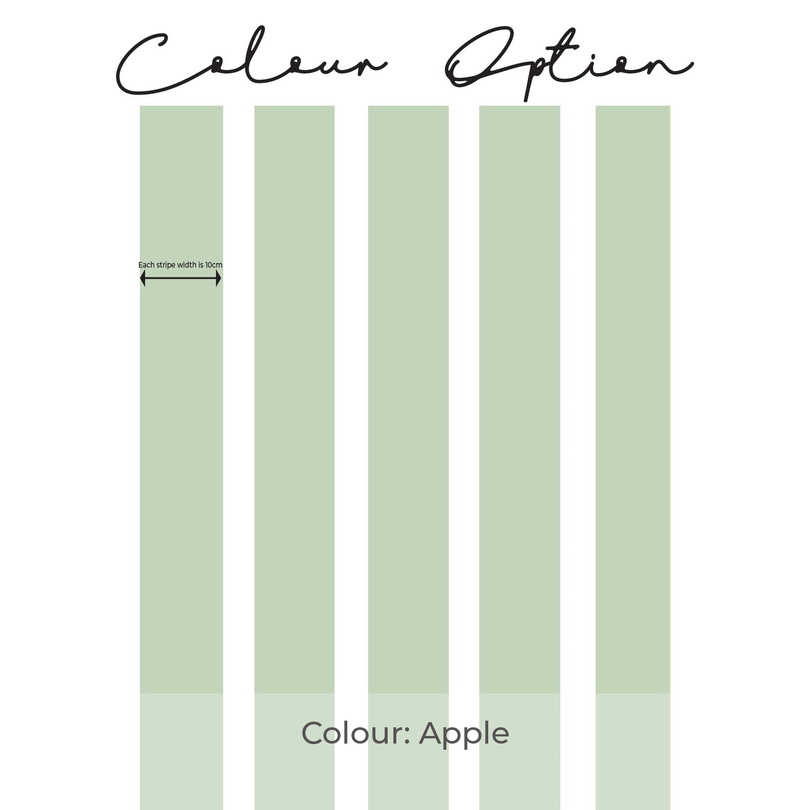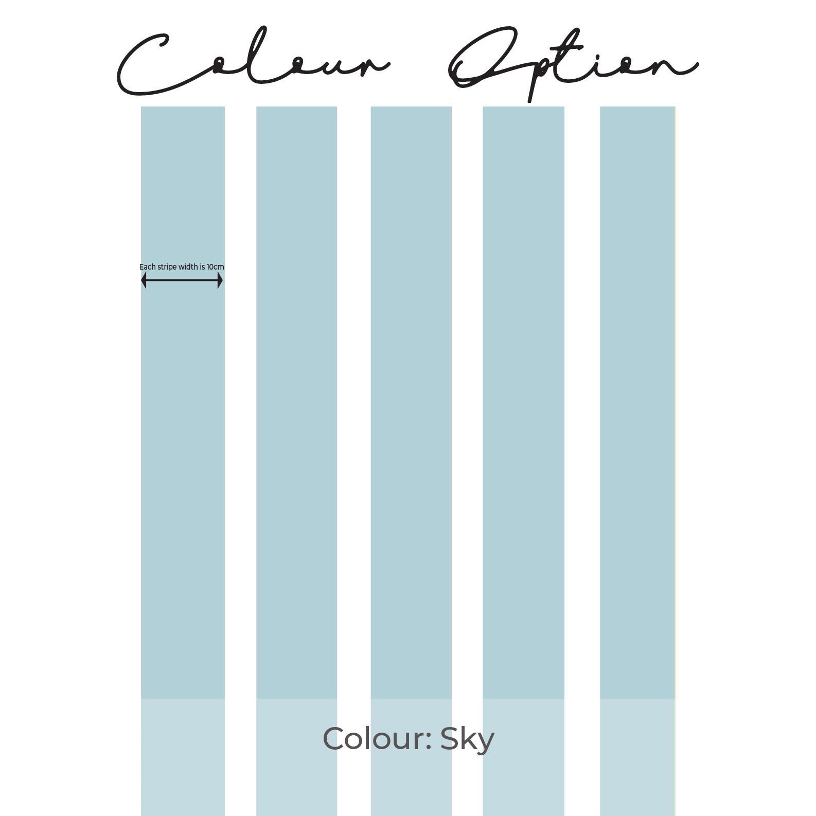 Each panel length is 50cm wide in total. Each stripe per panel length is 10cm wide, and there is 5 x stripe (individual) stickers per drop.